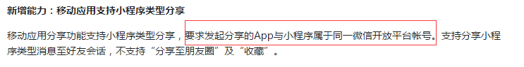 【要求发起分享的App与小程序属于同一微信开放平台帐号】 这句话是什么意思?