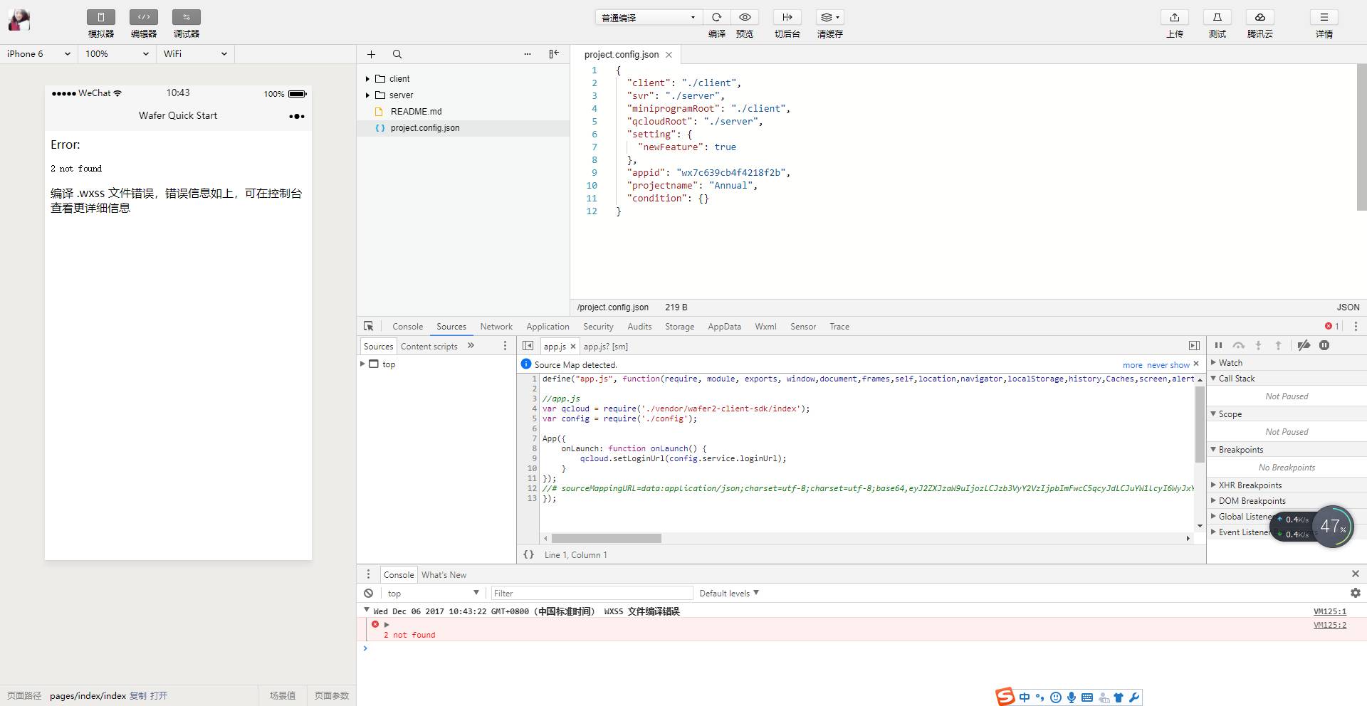 2017-12-05,更新微信开发者工具后,12-06启动昨天项目报错,就再次新增初始化小程序项目,但初始的项目也报错。如图: