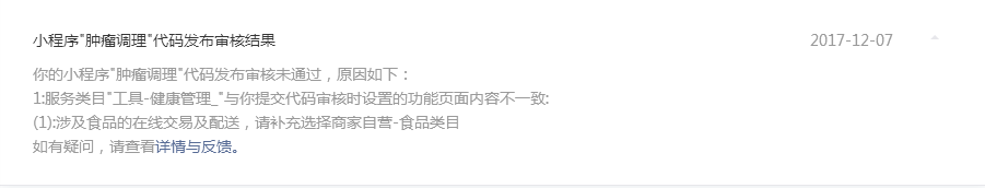 我们按照审核,补加商家自营服务类目--食品/饮料/生鲜,我们也确实有这个服务类目。我们首页核心功能合乎小程序审核标准,可为何又驳回?AppID(小程序ID) :wx164512ab6639fd9b