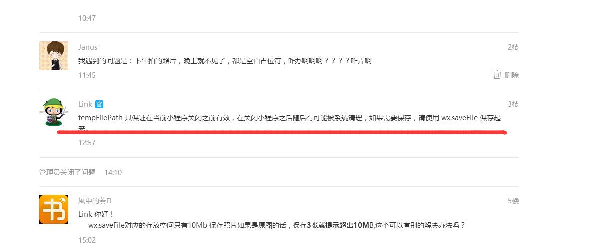 看到另外一个帖子,也是这个照片丢失问题。官方给的答复是使用saveFile方法,但是它对应的存储空间只有10M啊。我要保存大于10M的照片该怎么办呢?