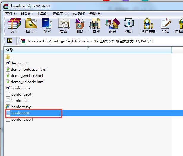 一、先到阿里巴巴矢量图标库(http://iconfont.cn/)生成自己的字体图标,并下载下来,找到ttf格式文件