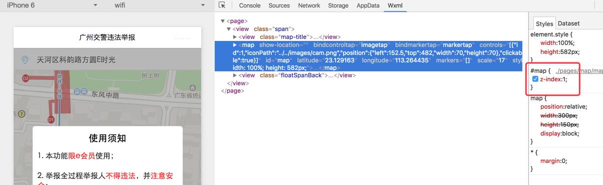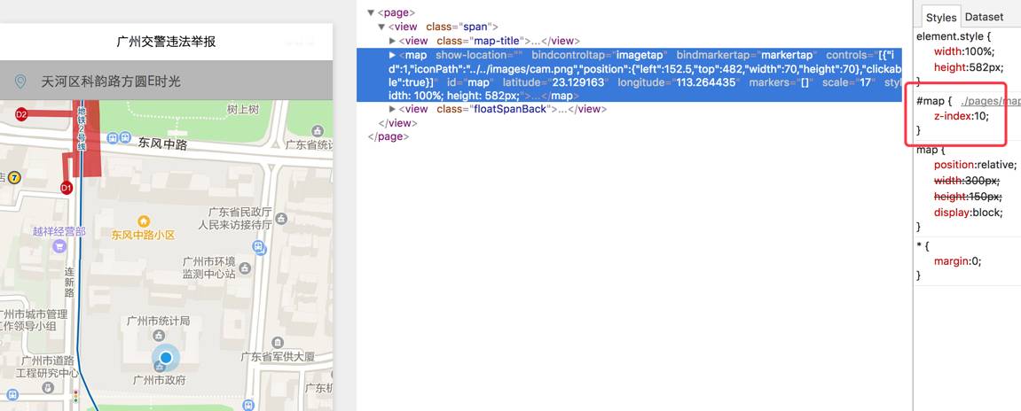 map组件上浮动一个view在开发者工具上模拟是正常的,如图: