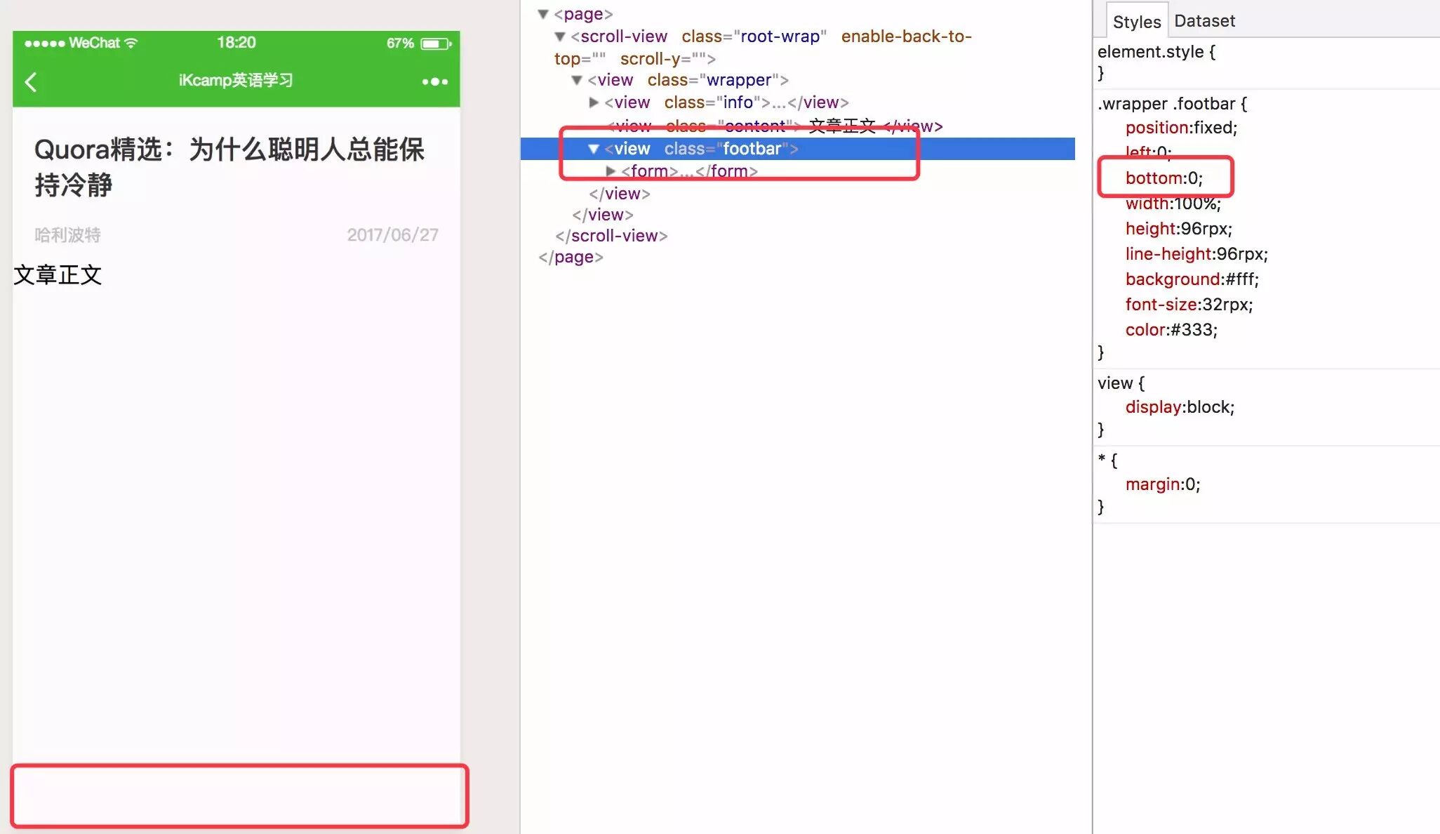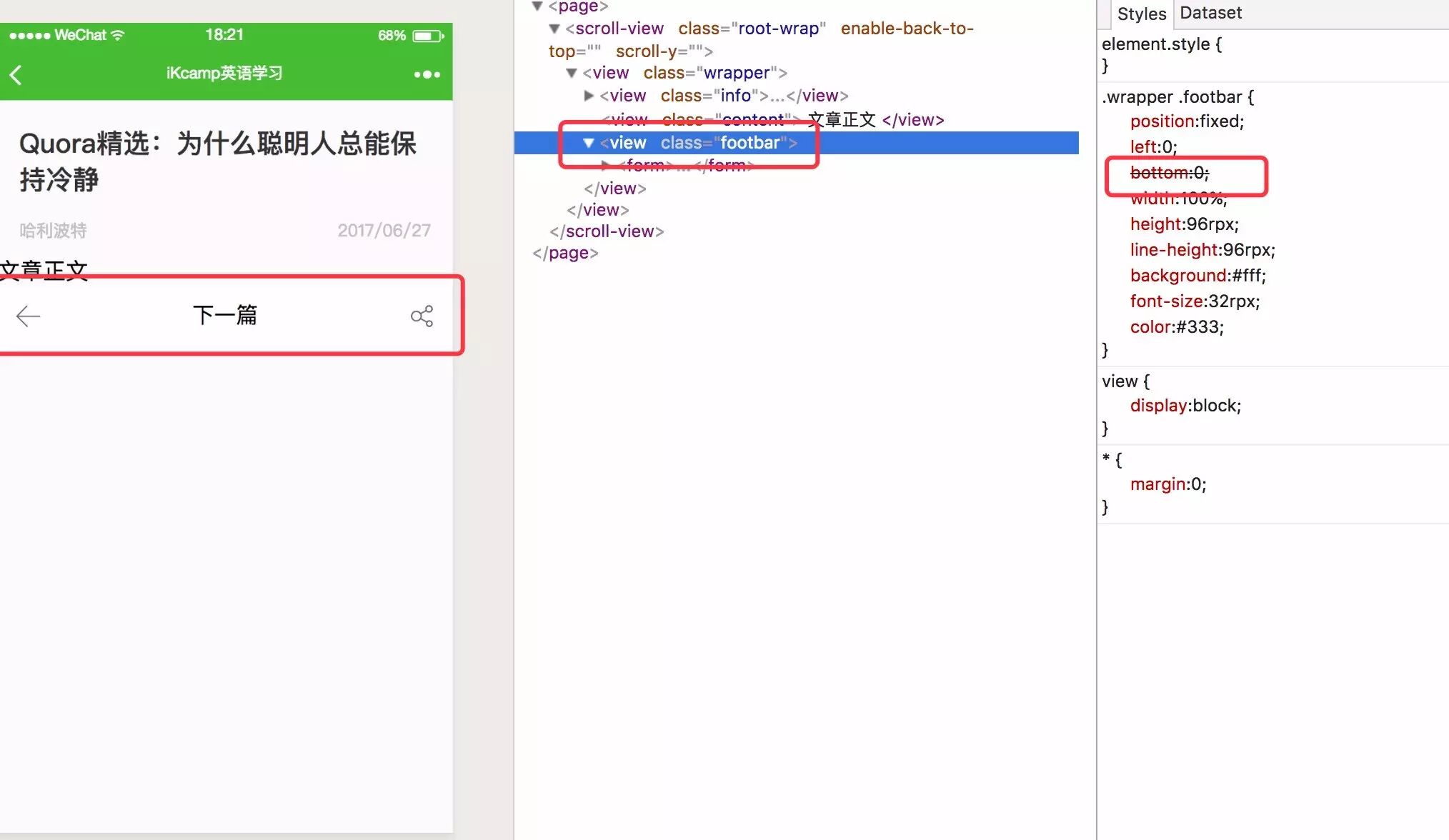 bottom值进行修改,会发生不一样的事情。bottom为0时候,定位的位置在窗口范围之外了