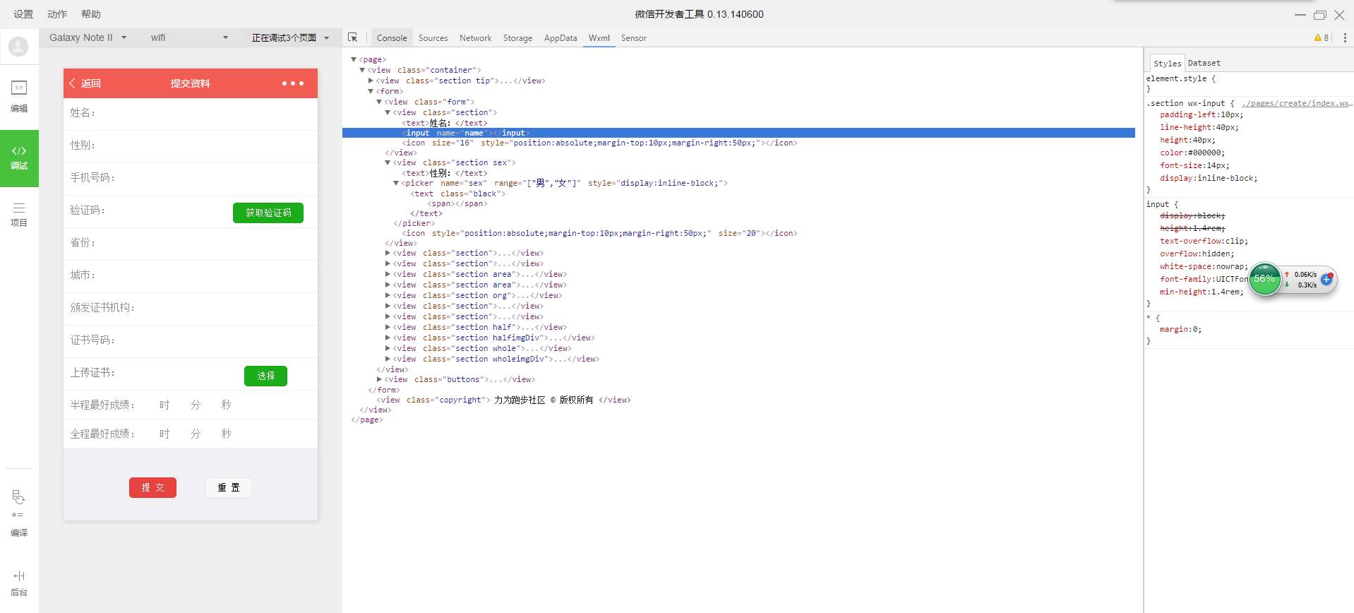 问题:提交资料页input错位