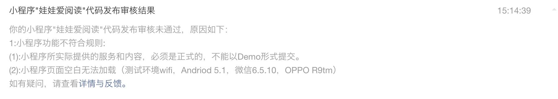 我们的小程序(娃娃爱阅读)已经提交审核了3次,都审核失败了