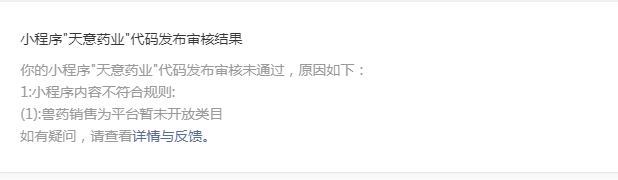 第一次提交通过了,后来修改了一点样式提交了两次都不通过,说涉及暂未开放类目,兽药销售,可是并没有销售啊