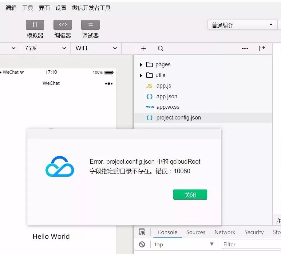 project.config.json中的qcloudRoot字段指定的目录不存在。错误:10080