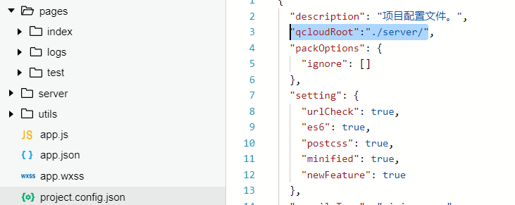 2、在跟目录下的project.config.json中加上"qcloudRoot":"./server/"