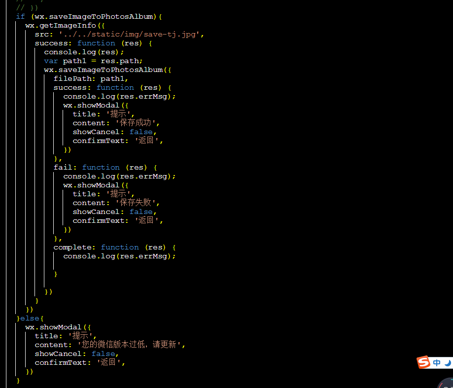 背景:我在小程序的本地static目录存放着目标图片,用户点击时候触发保存这张图片到相册的事件