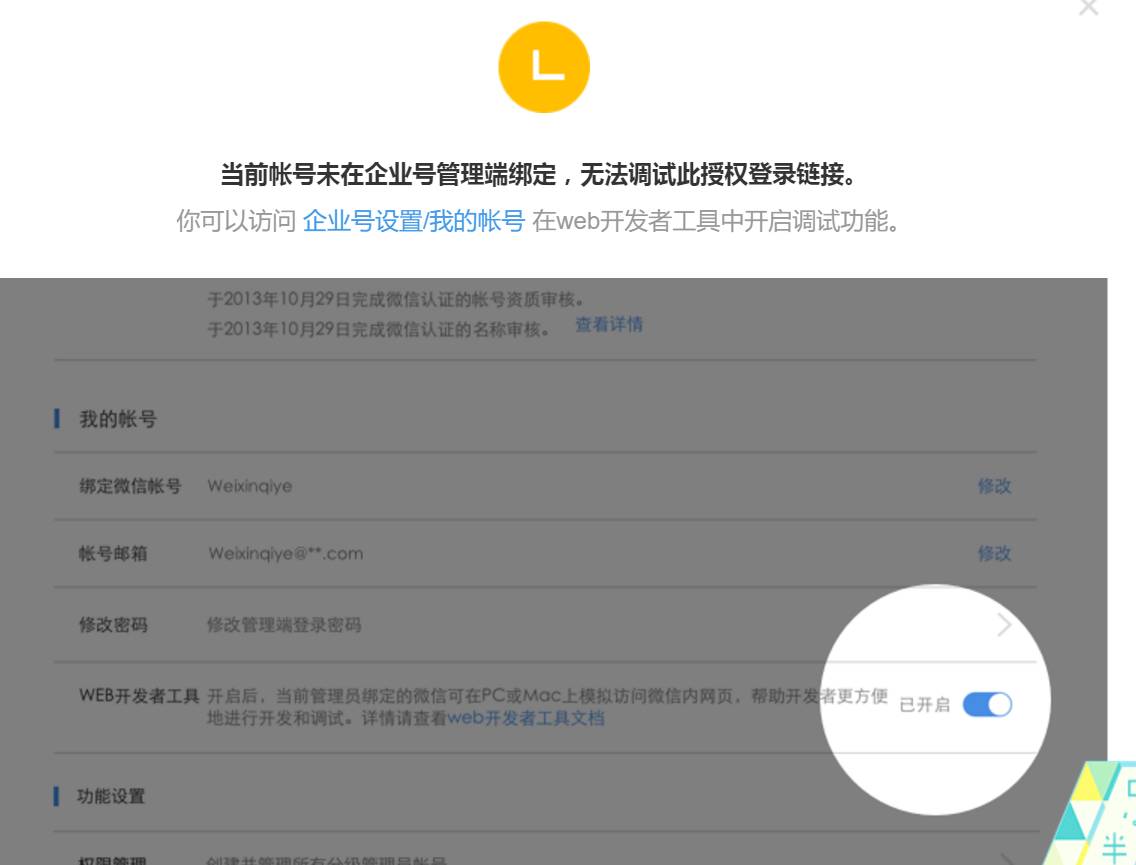 我们的企业号升级成了企业微信,之前企业号的应用出现了问题,现在想用web开发者工具来调试一下,可是输入地址后给出了下图的提示: