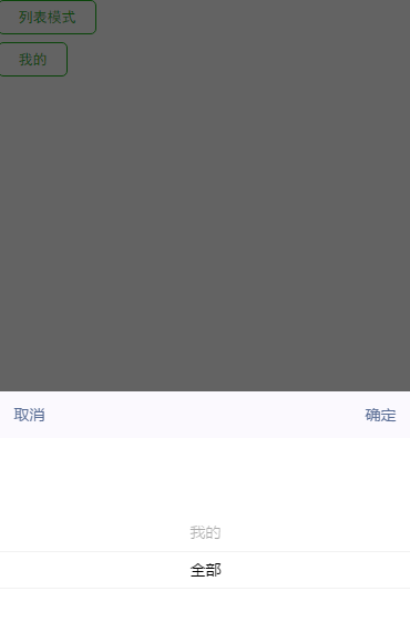 第一个组件选择为“列表模式”(modeIndex=1),这时选择第二个组件,弹出的面板里标记为选中的是“全部”(ownerIndex=1的时候才是“全部”),这时的ownerIndex的值还是0,所以弹出面板中标记为选中的应该是“我的”。