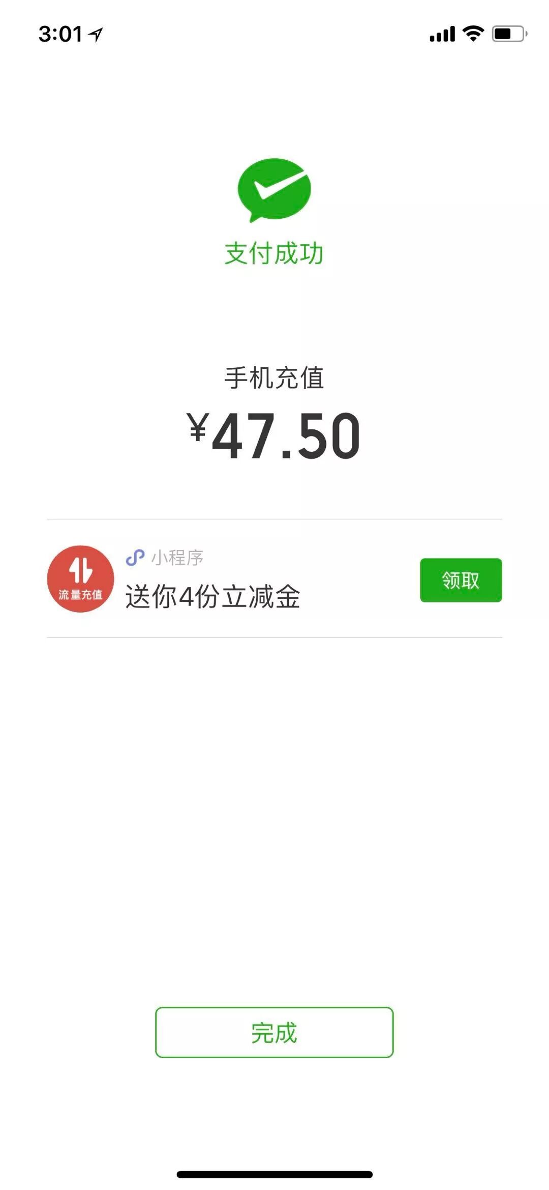 支付成功页暂未开放小程序入口,目前小程序立减金是联合运营模式,需要和微信的运营同学对接接入该能力。