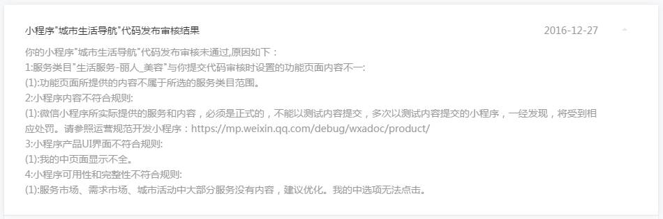 问题1:我们的开发的小程序,类似于赶集,服务于城市社区。提交审核后被驳回,原因是类目不正确,这个应该选择什么类目?