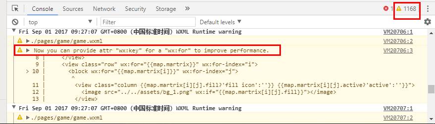以前就警告一次。。现在不加wx:key 刷的我都不知道要去哪看打印了 还是希望官方能完善一下