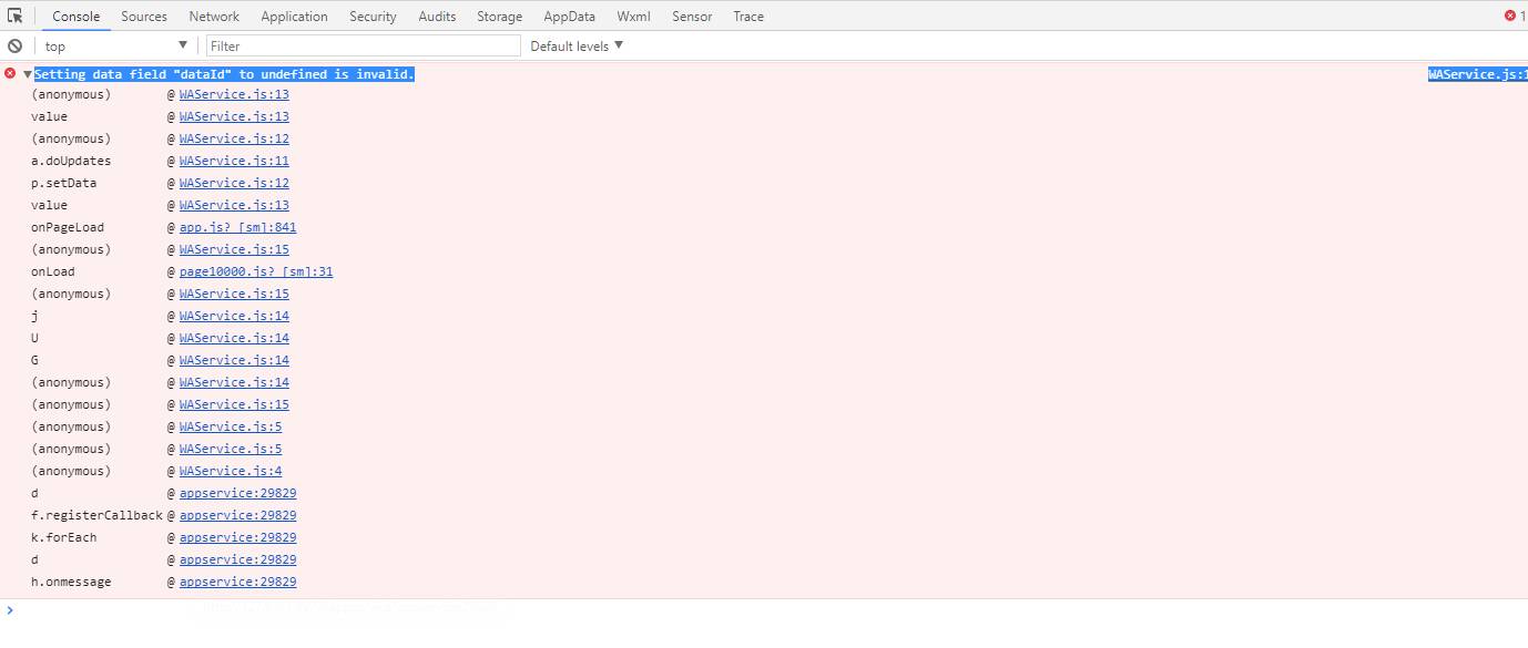 WAService.js:13 Setting data field "dataId" to undefined is invalid.