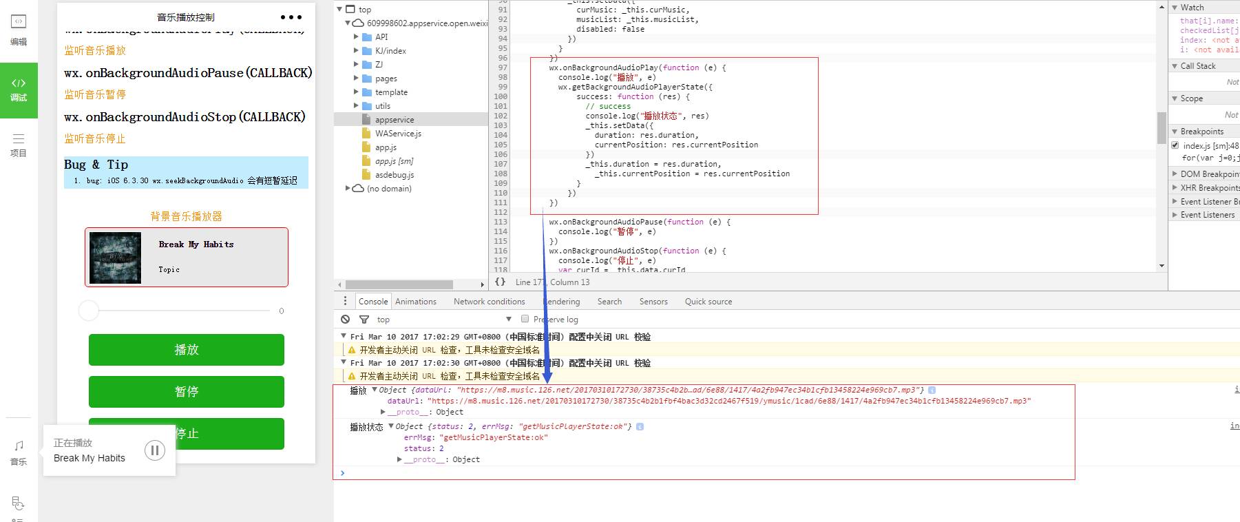 在开始播放背景音乐无法使用wx.getBackgroundAudioPlayerState检测播放状态;代码如下: