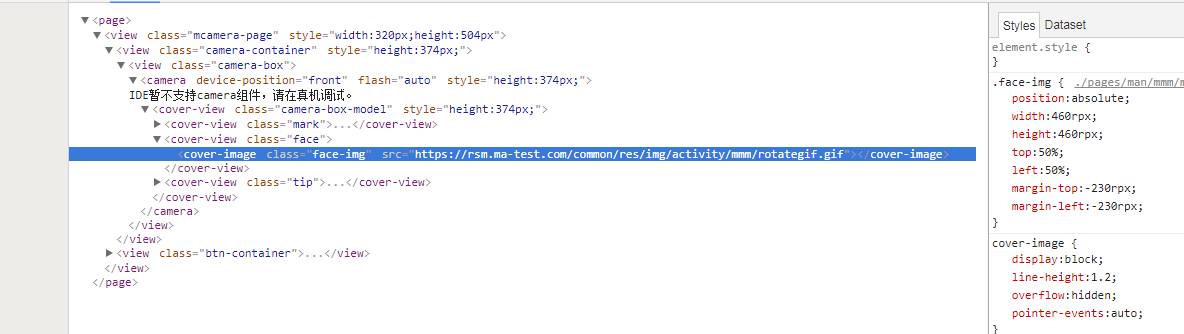 在模拟器上,camera组件上用cover-image引入一张gif图(https://rsm.ma-test.com/common/res/img/activity/mmm/rotategif.gif)是正常的,可是在真机上gif图就不会动了,求官方给个解释。