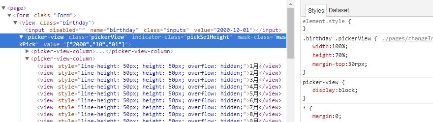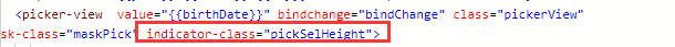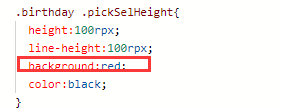 我设置选择器中间选中框的类名为pickSelHeight,设置背景色为红色