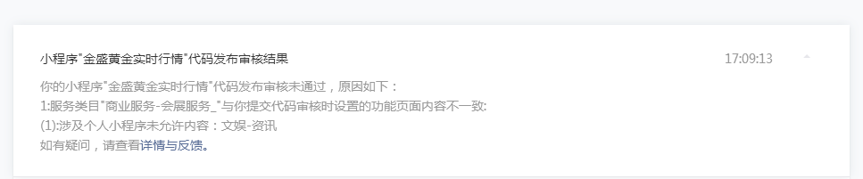 请问为什么版本一直在审核中,上一次的版本显示审核不通过,不通过原因如图: