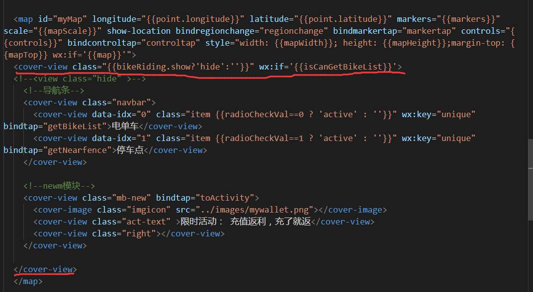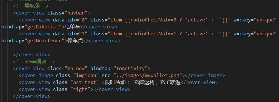 <cover-view class="act-text" >限时活动: 充值返利,充了就返</cover-view>