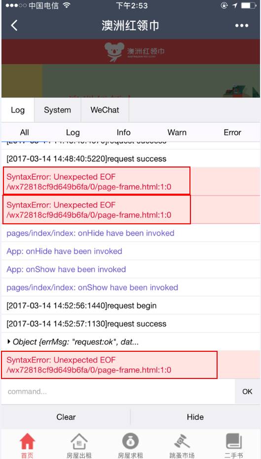 我找出的错误是只要我对请求成功的回调函数做操作,比如打印 res 就会报如下错误