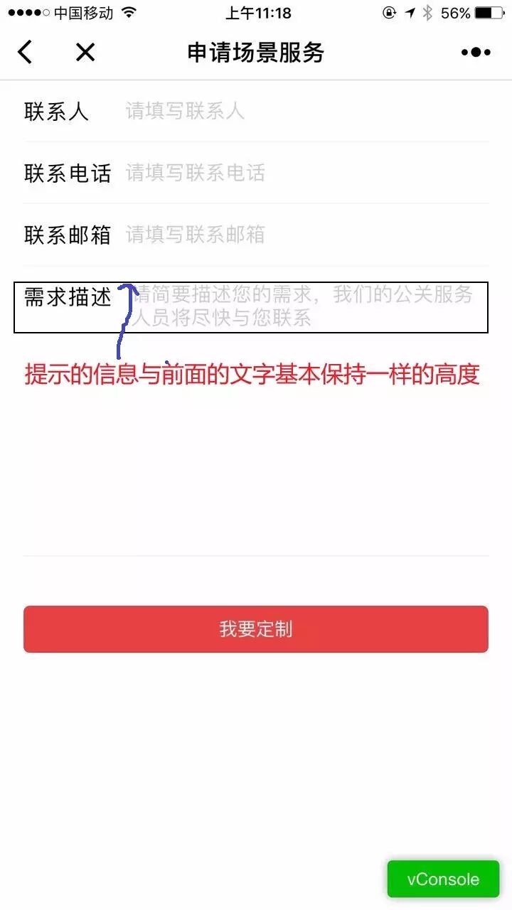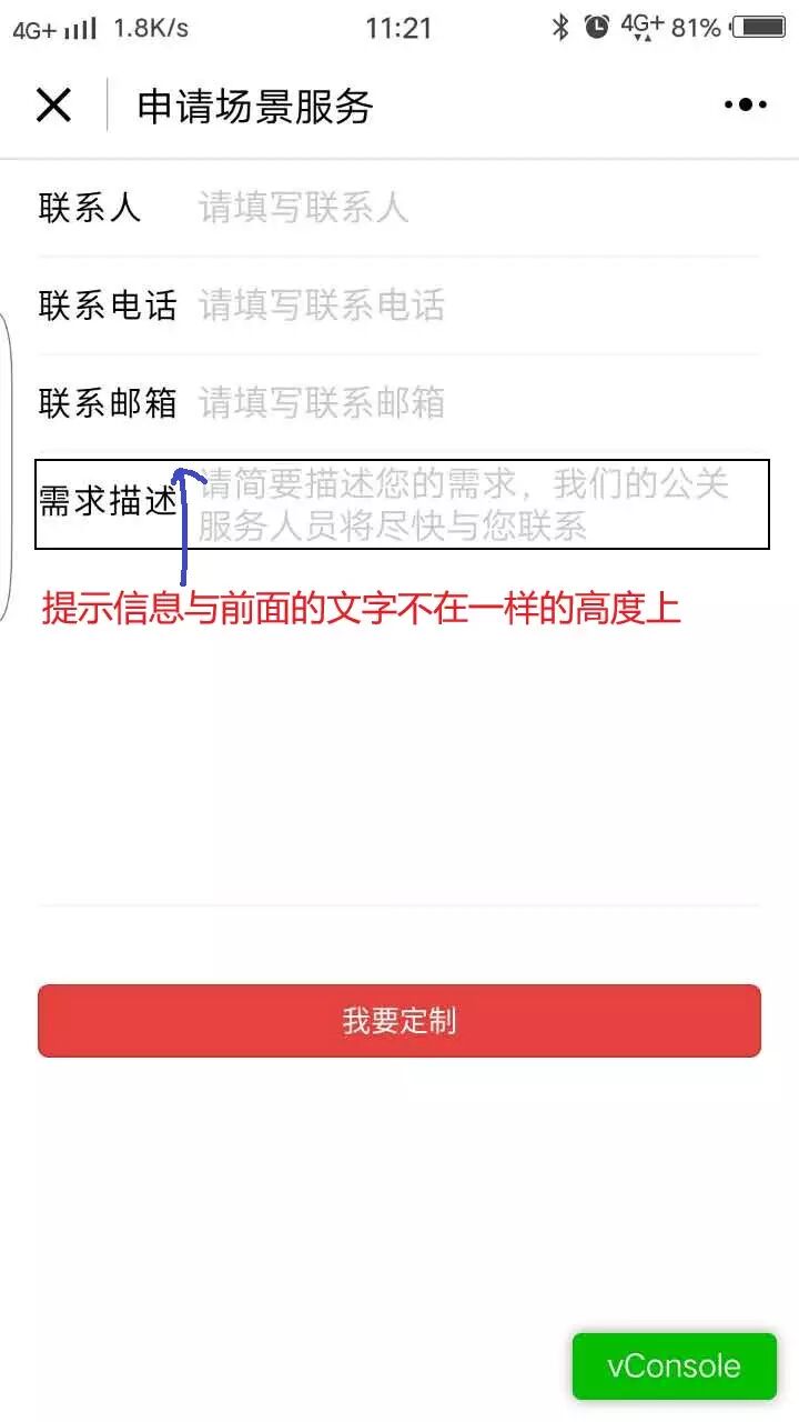 textarea多行文本输入框里的placeholder提示信息在IOS和Android真机上显示不一样,无法统一样式,用户体验不好。