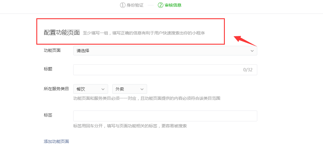 这个配置功能页面,能选择内页做为“功能页面”进行配置吗?我审核2次都无法通过能否改变功能页面为内页点餐页面(不是主页是内页),并把服务类目设为外卖再次提交审核呢?