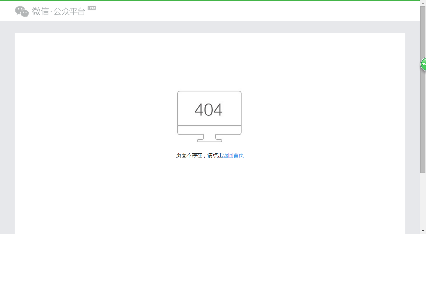 公众号已经打款验证通过了的,开通门店小程序时总是跳到页面“404,页面不存在,请返回首页”,这是怎么回事啊?急死了,望解答