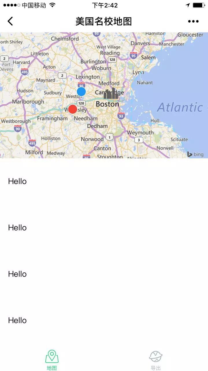 这是一开始进入小程序时,显示是正常的 放大平移至地图其他区域,再平移返回,发现波士顿出了城市的图标以外,还出现了不正确的红色标记重叠在一起 注意Worcester也出现了不正确的蓝色标记 | ||