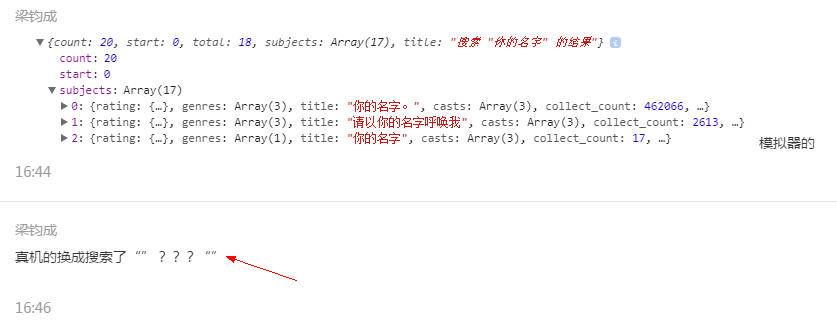 搜索时打印的数据,在真机就变成搜索“???”字符了,为什么呢