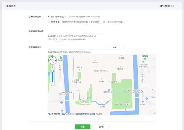 需要提供地点的经营资质信息,通过审核后,即可添加地点。