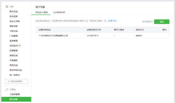 一个经营资质只能添加一个地点,一个地点只能展示一个小程序。