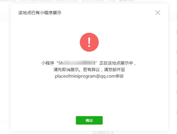 若一个地点已被别的公众号或小程序添加,并且已展示别的小程序,则你的小程序无法再展示。请先把展示中的小程序取消展示,再操作你的小程序展示。
