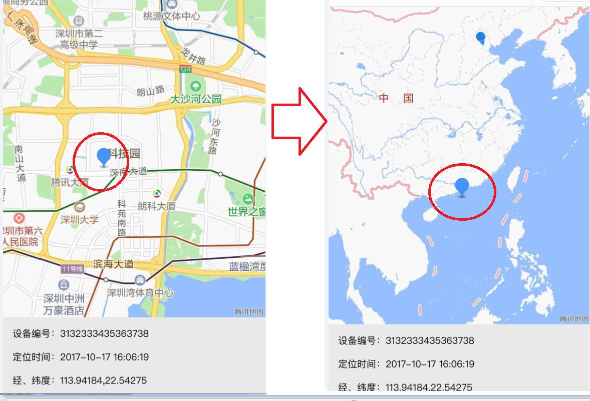 地图缩小的时候Marker位置偏移。本来是在深圳的,缩小之后跑到海里去了