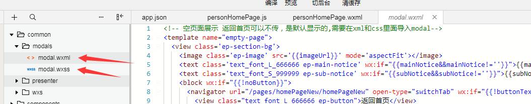关于CSS,需要在模板定义的地方能访问到,比如我定义在modal.wxml,样式就相应的在同名的modal.wxss里面