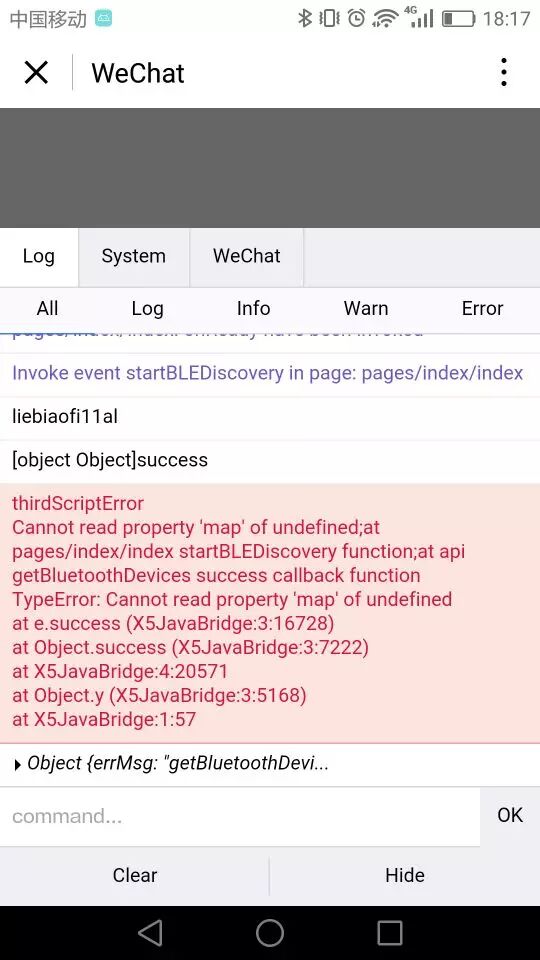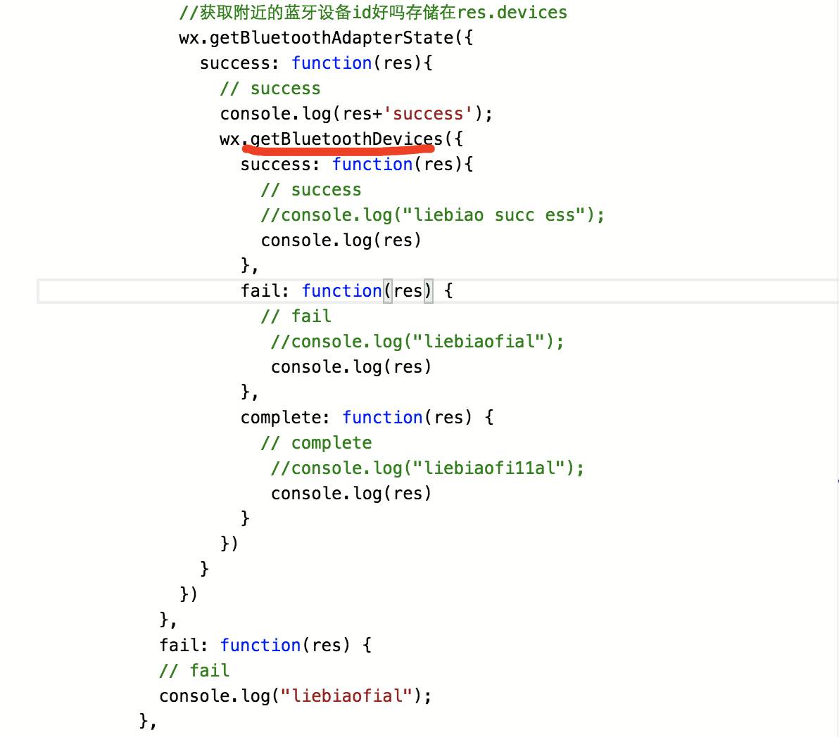 方法内还没有写任何东西,电脑上各种模拟器都是正常不报错,, 但是手机扫码测试运行到getbluetoothdevices就会出错。。。