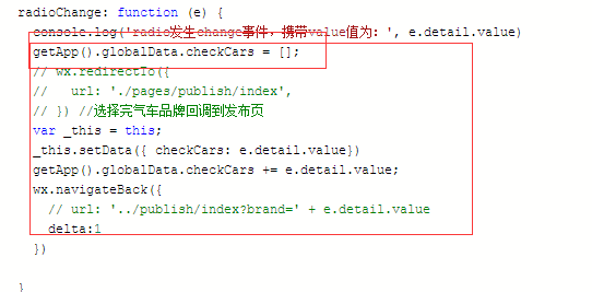 getApp().globalData.checkCars += e.detail.value; 这里是复制,然后在跳转页面里接受值,我在赋值前重置了一下,就可以了。