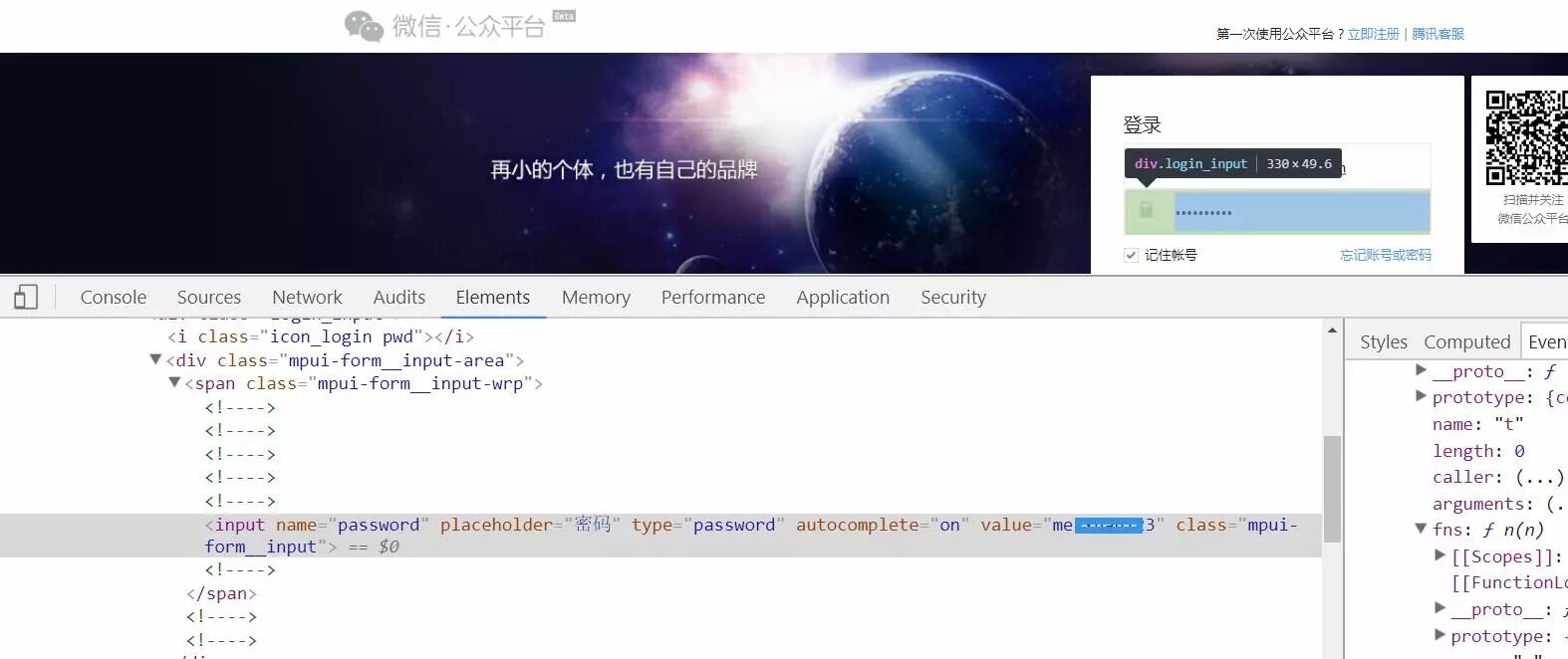 在公众平台的时候输入的微信密码没有加密处理 是不是因为后面要扫描二维码所以才显得如此随意 可以直接看看页面获取到密码