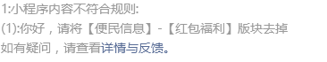 在社区中,很多小程序的审核都会反馈具体问题,我们希望审核组能对以上问题做出解释。如果新提交版本还有不恰当的地方,请详细列出问题所在,我们会及时修改,非常感谢!