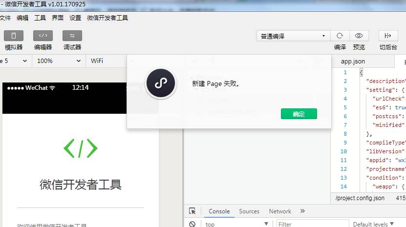 的时候,新建page就会提示失败,但是如果在app.json里面写了刚才那句代码,就可以成功创建page,并自动填充页面的路径。