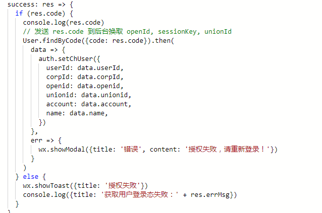 为什么刚打开小程序就说我授权失败,请重新登陆,而且我的这个code有值但是总是错误的,提交后台总说code参数错误。我跟另一个同事是同样的代码,他的没有问题我的这个总是登录不了 现在开发进行不下去了,想问问到底哪里出了问题