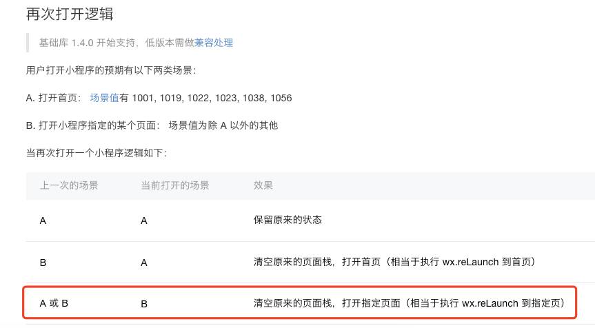 我们的小程序,公众号自定义菜单有两个进入小程序的菜单(比如A、B),是进不同页面的(如a,b),但实际上从一个菜单A进入小程序后a页面,回退再点击第二个菜单B,小程序页面还是保持在刚刚的a页面,并没有加载页面b。