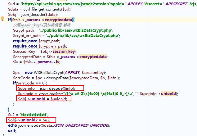 一旦程序走if($this->_params->encrypteddata),小程序端接收到的是一个字符串,这就蛋疼了,小程序端不能直接使用,问题是怎么就会是一个字符串?