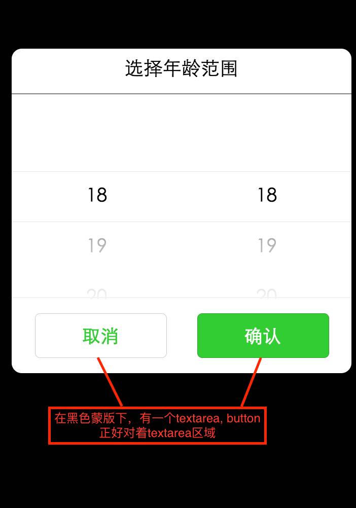 当button 在textarea上时,button不能点击。我是醉了,我一个控件一个的排除,花了我2个小时,结果发现textarea的问题,把 textarea属性设置成disabled="{{true}}" focus="{{false}}",button 还是没有反应。