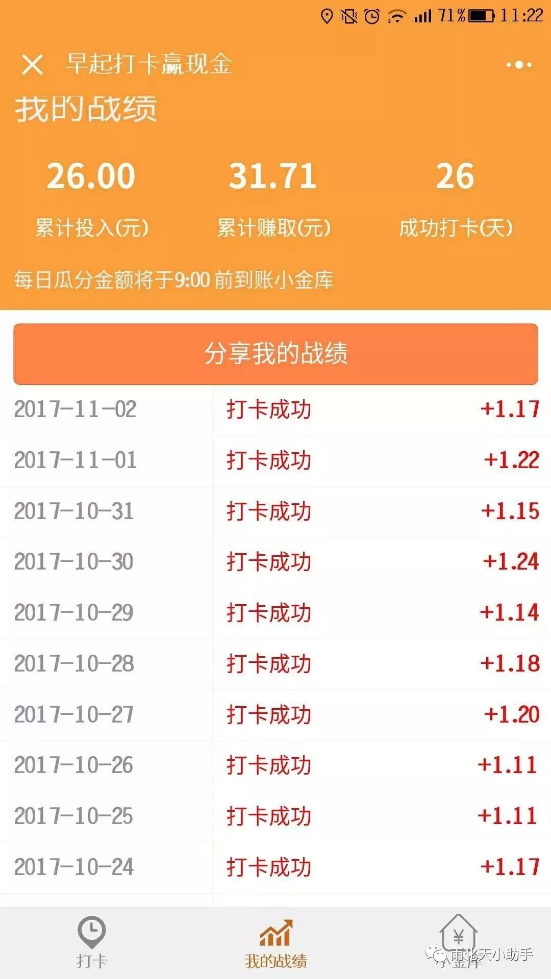 我们的小程序没有存在赌博活动,用户都是每天自己支付一元参与活动,没有强制性,而且第二天在规定时间内打卡,是有一定的奖励的,也只是为了用户可以早起,不迟到上班,且不存在非法占有用户1元本金的行为。资金全部通过微信官方通道进行支付。