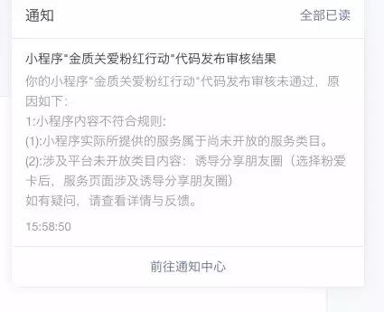 2、2017-10-10,16:29:27提交审核的版本仍存在诱导分享朋友圈内容,请修改后重新提交审核;