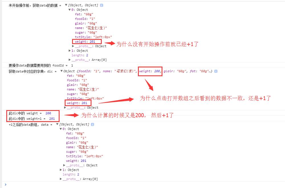 本来是要点击加减按钮,修改数组中的某个数据值,但是发现在计算开始之前的打印,值就已经被修改了。 在计算过程中也会出现打印的值比较错乱的问题。