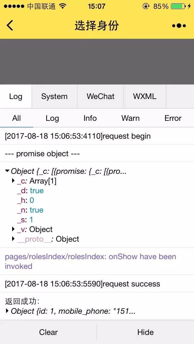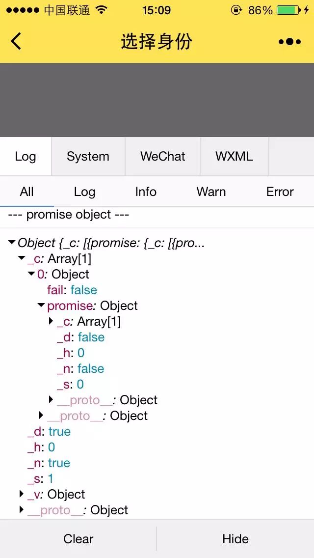 promise对象是有的,不像网上很多人说的promise对象是null或undefined。promise对象里能看到状态信息和api的返回信息,这个跟后台的信息是一致的。截图如下: