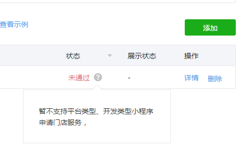 附近门店小程序暂不支持平台型、开发型、工具型小程序上附近,详情可参考小程序运营规范:https://mp.weixin.qq.com/debug/wxadoc/product/#13