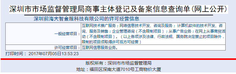 另外,我们公司刚刚更新了公司名字,从“深圳前海大智科技有限公司”变更为“深圳前海大智金服科技有限公司”,两者属于同一公司,也有截图。